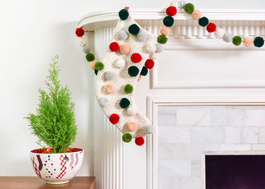 Knit Stocking With Pom Poms