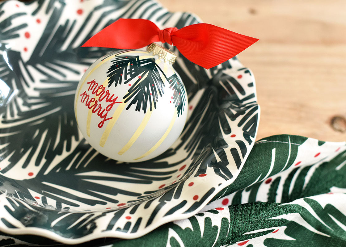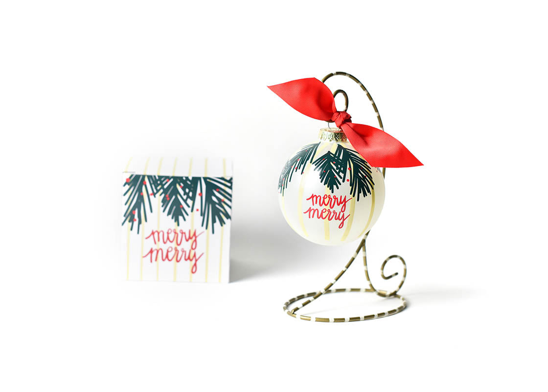 Our Coton Colors design team takes time to artfully create Christmas ornaments that inspire you to celebrate everyday moments! This original ornament design is topped with a bright red bow to accent the cheerfully scripted, “Merry Christmas.”
