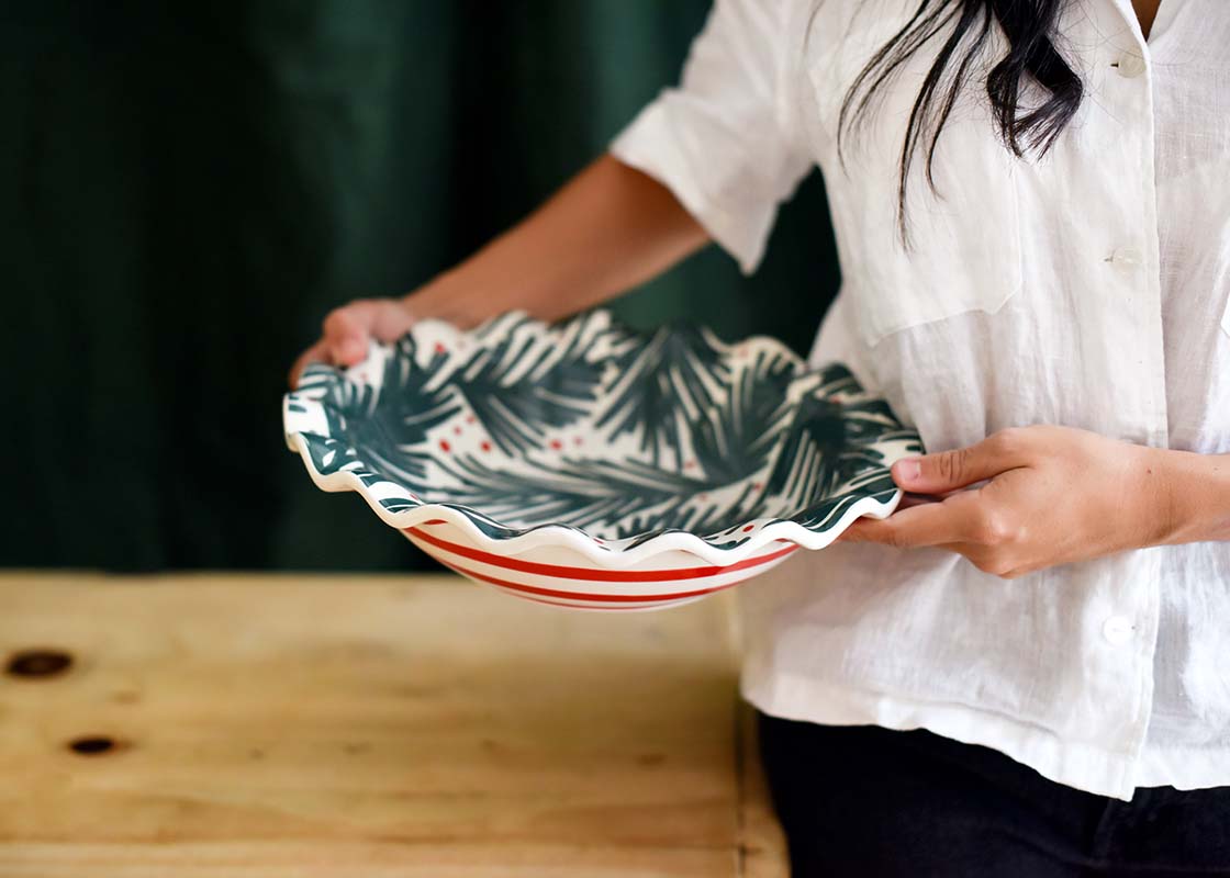 Dress your table with holiday style with our Balsam and Berry Ruffle Best Bowl. Use our ruffle bowl to serve up your most famous side dish while adding a pop to your Christmas season dinnerware. It would also be the perfect host for everyone’s favorite cinnamon scented pinecones or holiday potpourri.