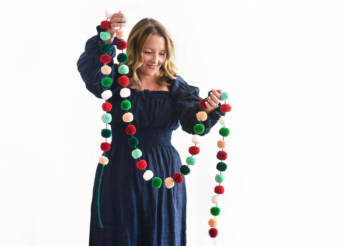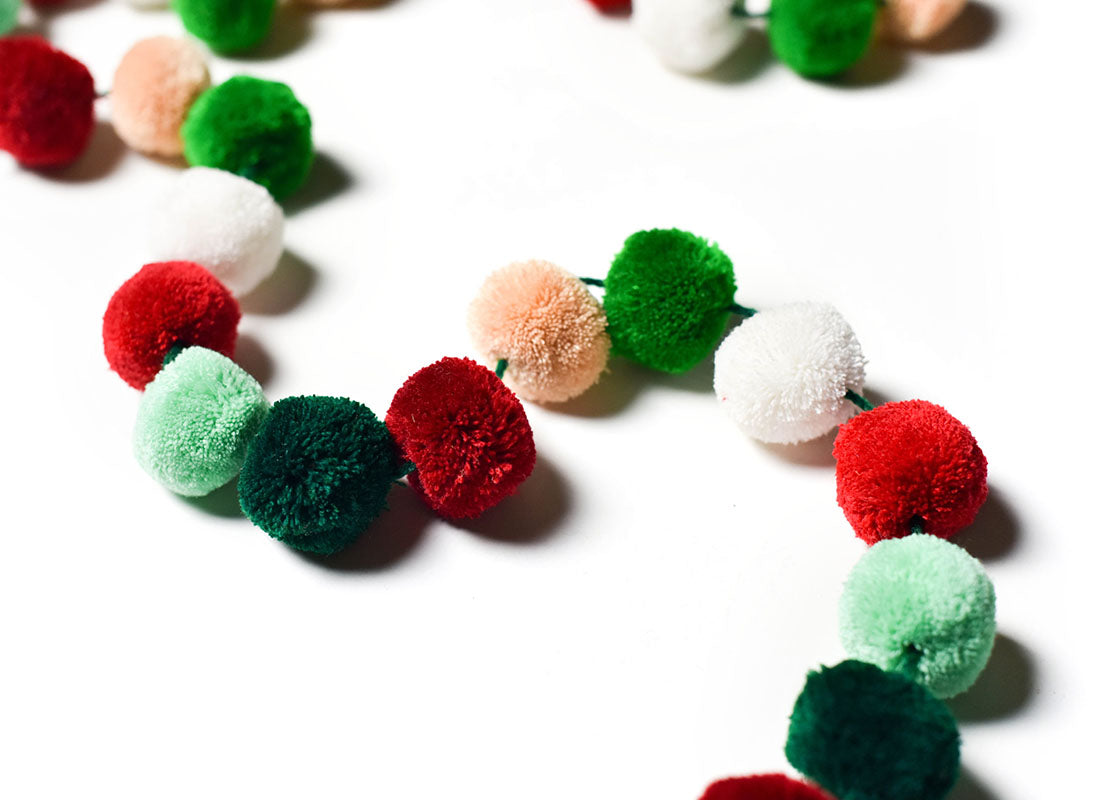 Decorate for the holidays with quick and easy décor essentials that will add cheer, style, and color to every corner of your space. This pom pom garland is part of our Christmas in the Village Collection and is designed to pair with similar pieces or stand on its own. Wrap the strand around your Christmas tree, drape it over your mantle, or create a custom centerpiece for your holiday table with its versatile colors and style.