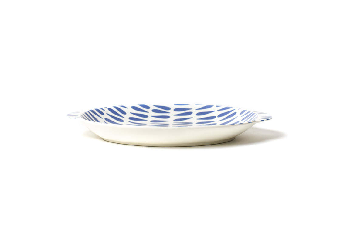 The raindrop-like pattern, cool blue hue, and convenient handles lend both style and function to every occasion. Celebrate all of life’s moments, both big and small, with this chic serving platter filled with your most loved culinary delights.