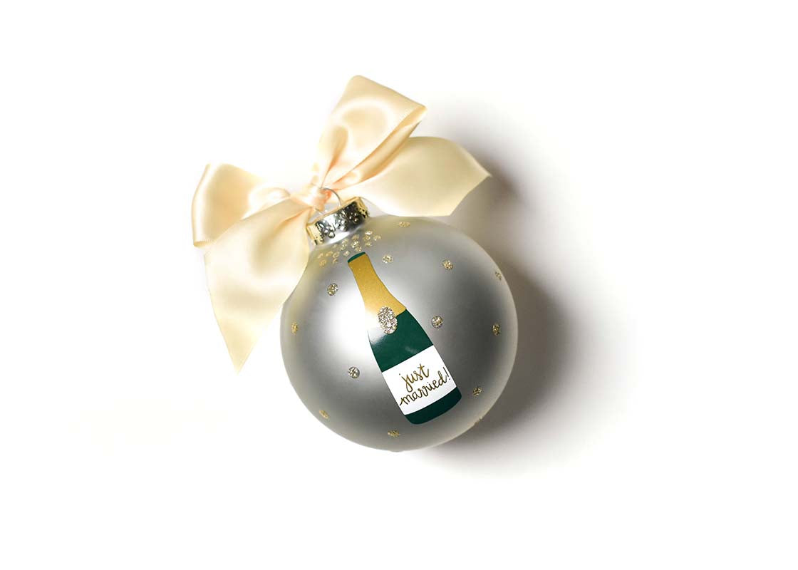 Share what you’re celebrating with our Just Married Champagne Pop Glass Ornament.