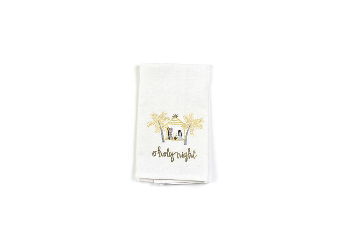 A divine reminder of the reason for the season, our Nativity O Holy Night Small Hand Towel is a perfect addition to your home holiday décor. Our detailed linen hand towel is perfect for religious Christmas décor that also offers wonderful functionality, especially during the holidays. This embroidered hand towel is sure to bring joy to any space in which it hangs this holiday season.