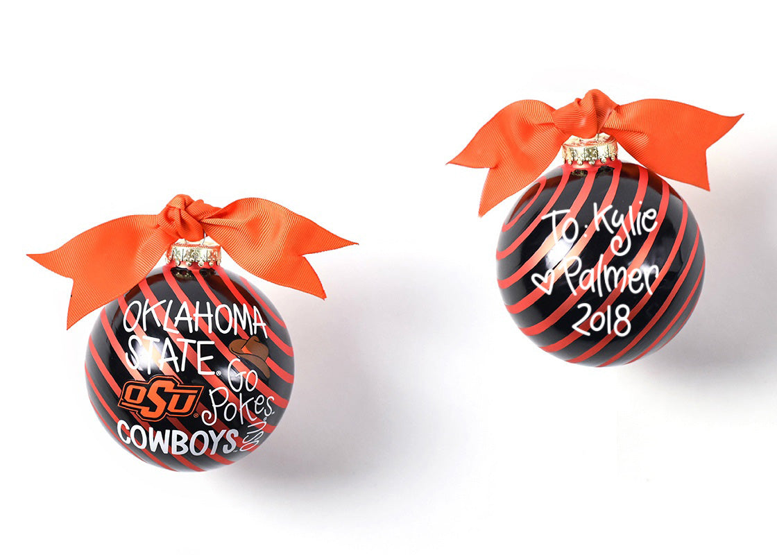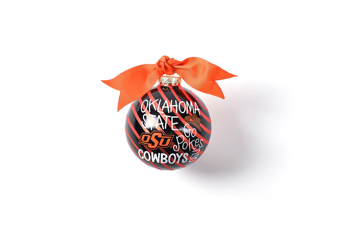 Any fan will love this Oklahoma State Word Collage Glass Ornament. You’ll be proud to showcase your school pride during the holiday season with this spirited ornament featuring the OSU logo and school colors!