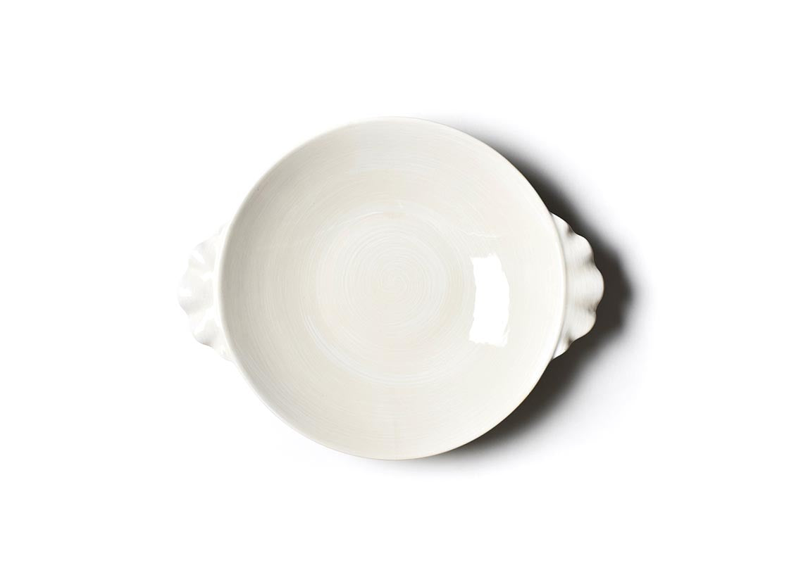 This 11-inch pasta serving bowl features hand-painted white and cream brushstrokes, a versatile size for serving, and two ruffled handles that tie this bowl into the ruffled design of the rest of our Signature White Collection. From an intimate date with your significant other to a weekend brunch with family and friends, celebrate memories in the making with our beautiful white pasta bowl.