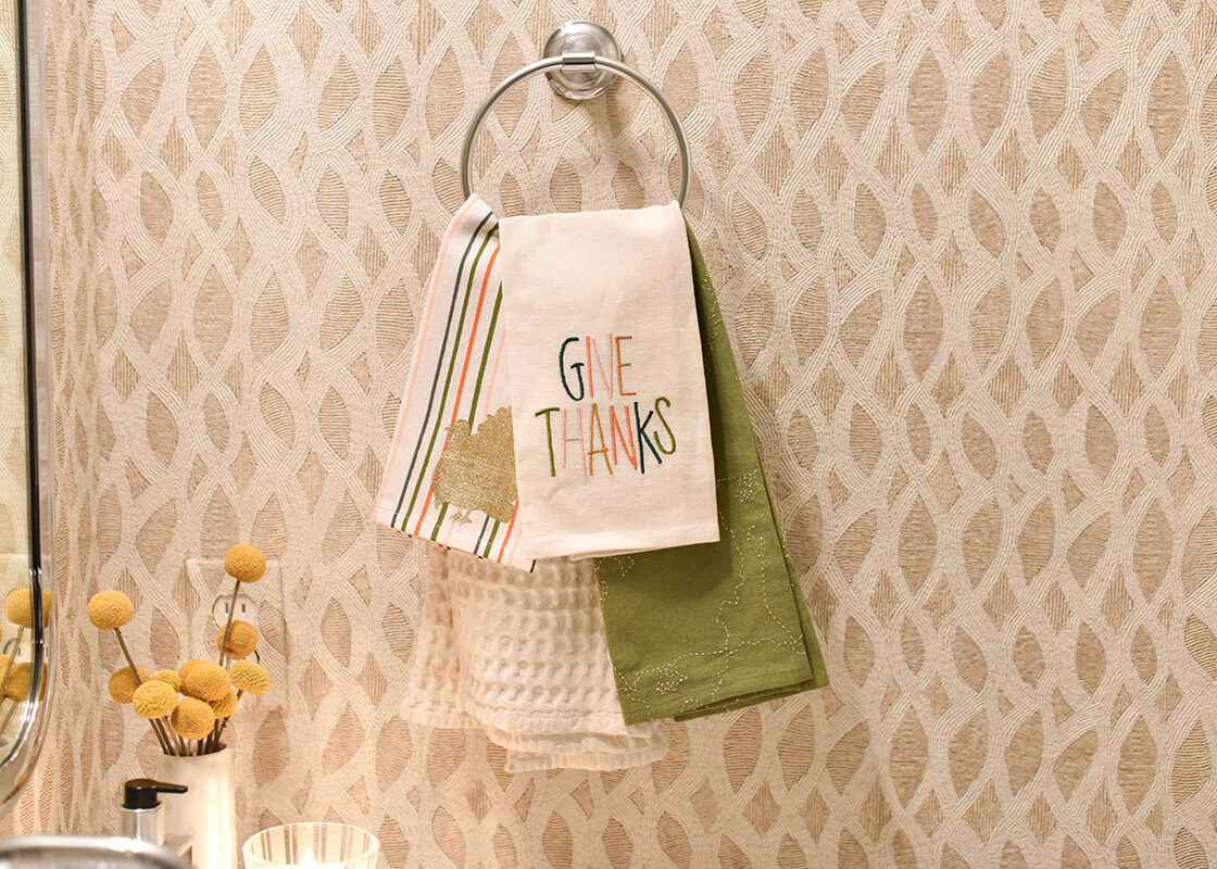 Gobble up our easy entertaining essentials, starting with our Turkey Stripes Hand Towel.