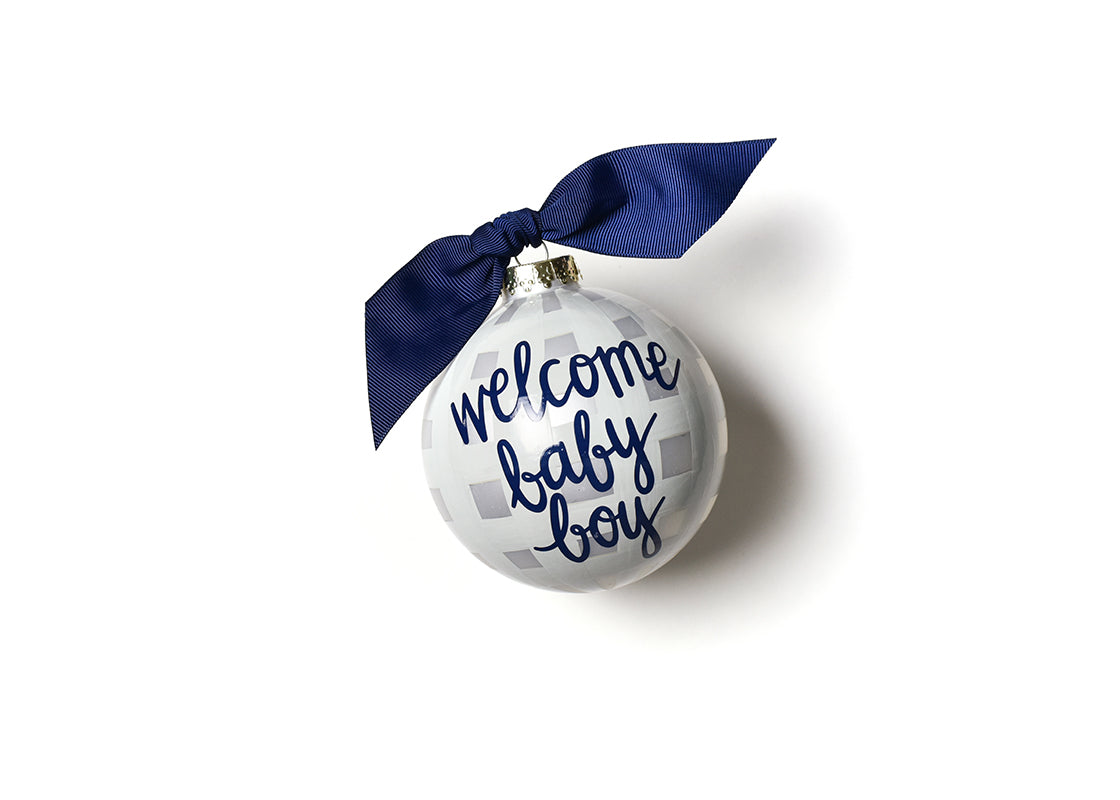 Welcome Baby Boy Gingham Glass Ornament