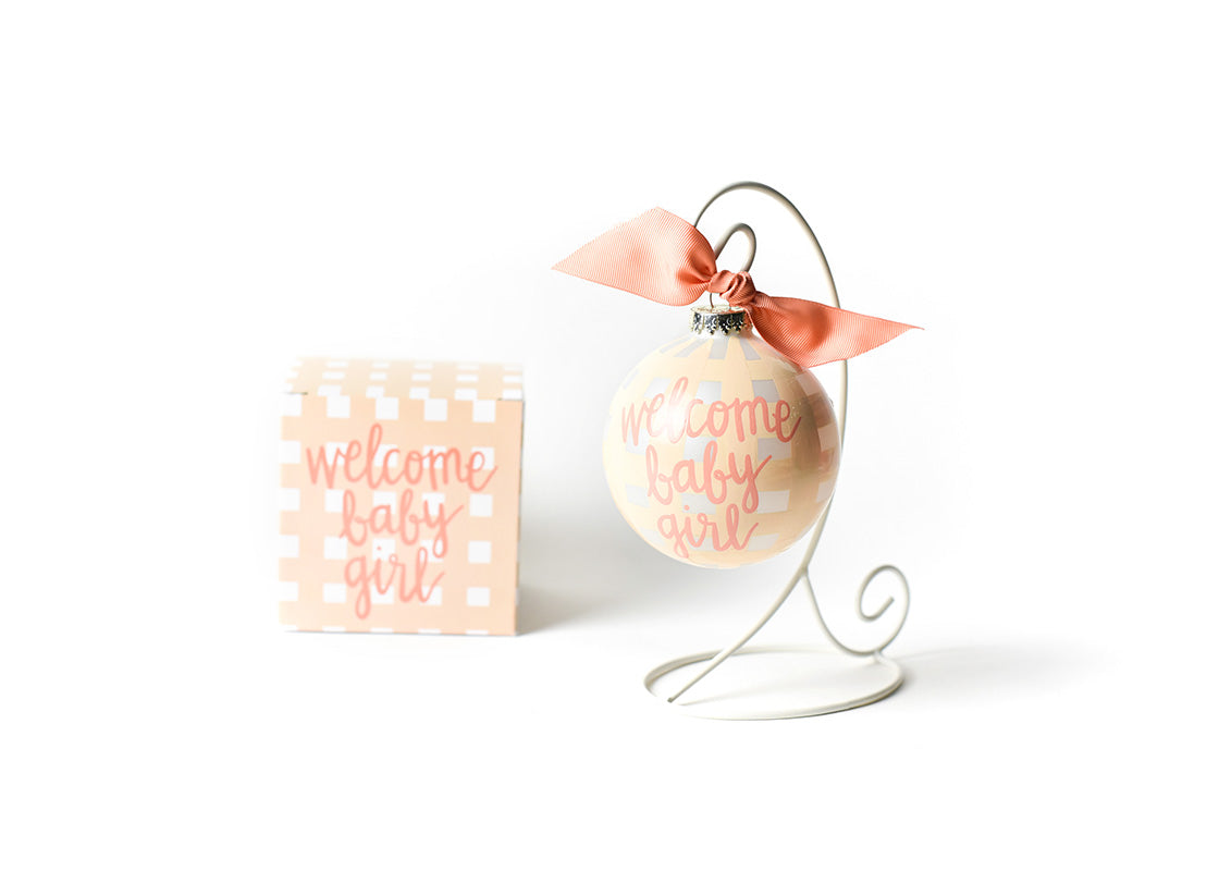 Welcome Baby Girl Gingham Glass Ornament