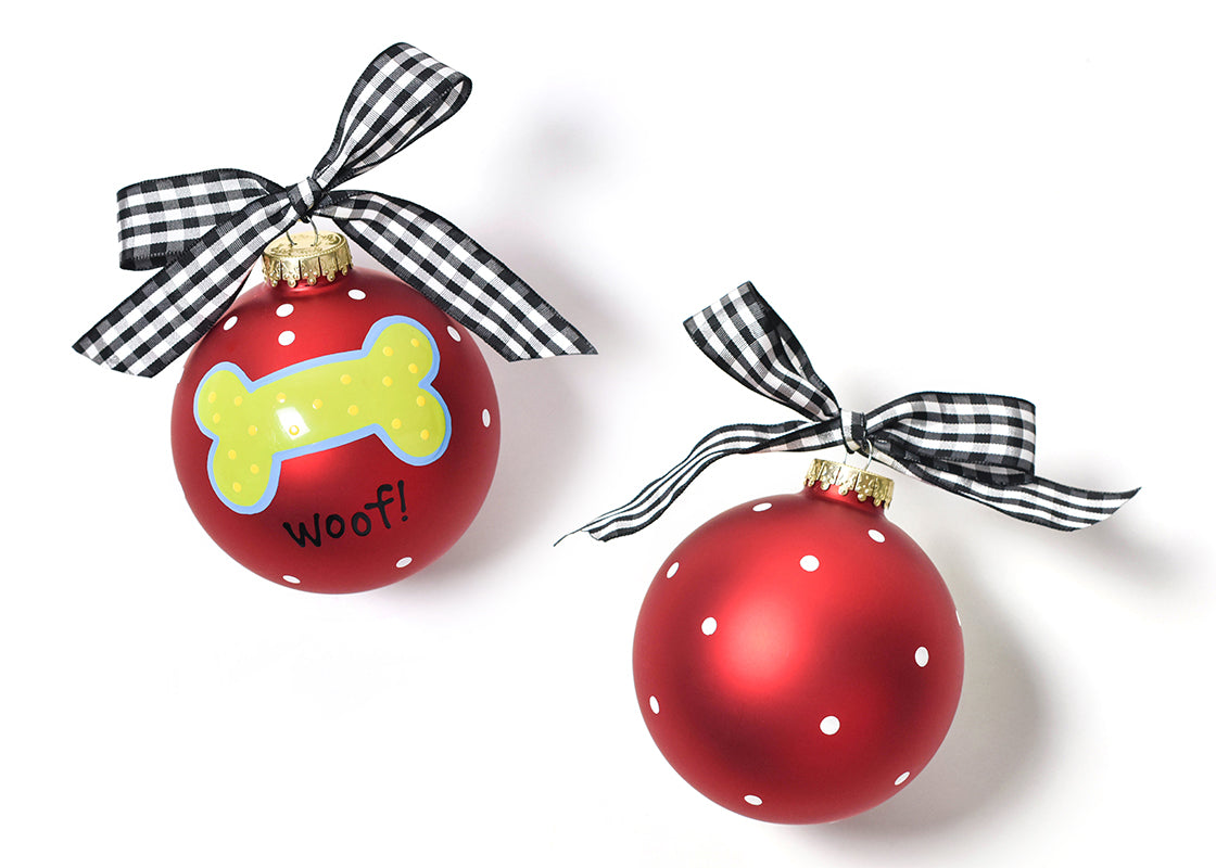 Woof Dog Bone Glass Ornament